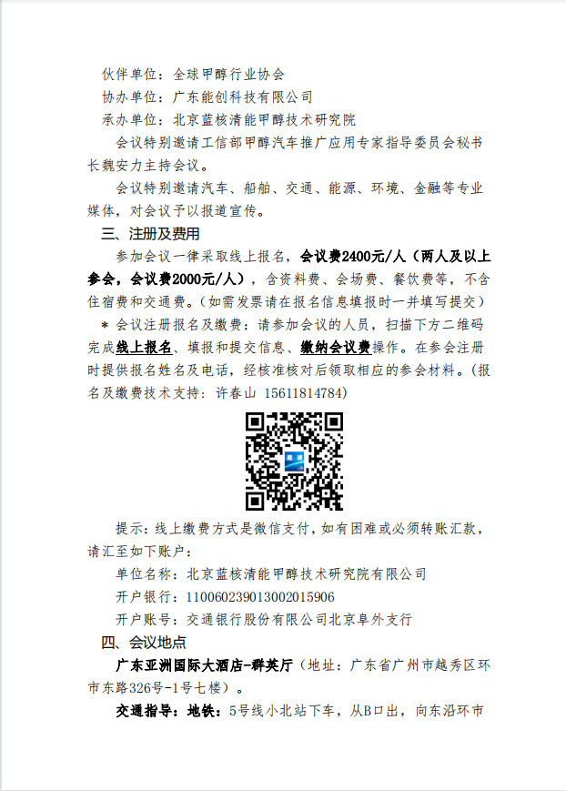 廣東能創科技有限公司作為協辦單位與工信部甲醇汽車推廣應用專家指導委員會、北京藍核清能甲醇技術研究院共同推進此次會議。