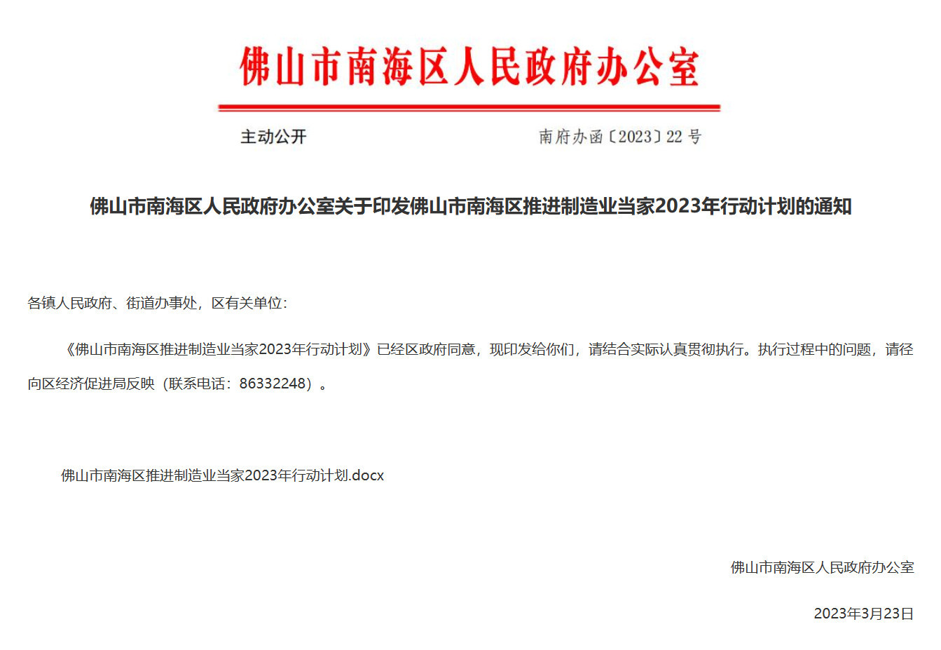 佛山市南海區近日發布《南海區推進制造業當家2023年行動計劃(2021-2023)》,該計劃提出了一系列措施,旨在推進南海區產業轉型升級,推動氫能產業、醫藥產業、半導體產業等制造業高質量發展。