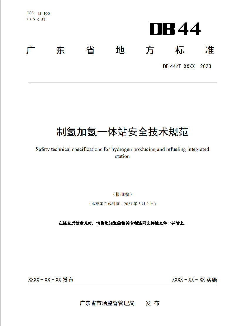 5月6日,廣東省應急管理廳發布了關于征求《制氫加氫一體站安全技術規范(報批稿)》地方標準意見的公告。