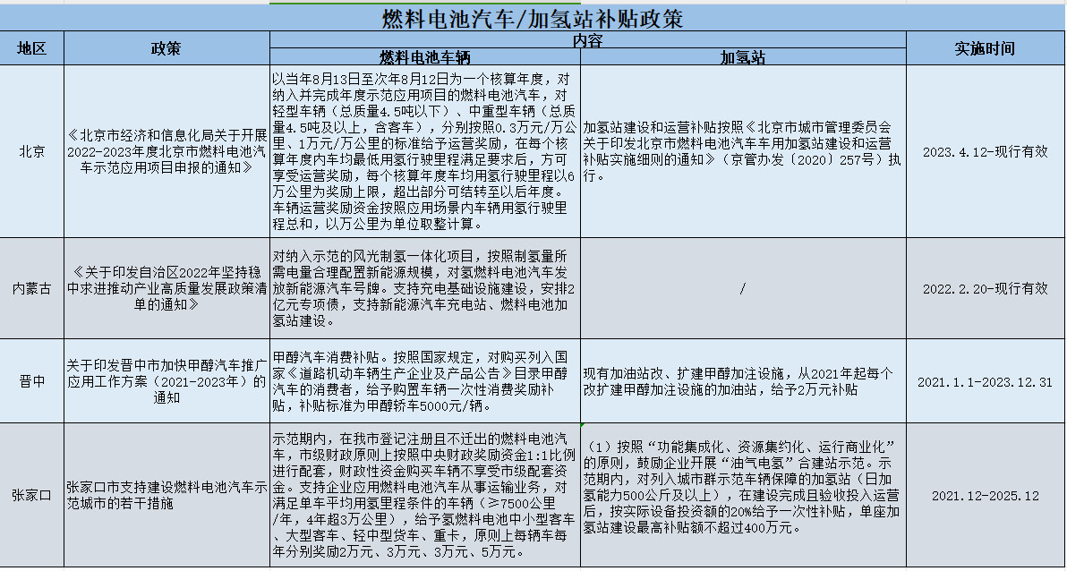 隨著氫燃料電池產業鏈的不斷完善,疊加各省市政策的引導,我國的氫能及燃料電池產業發展十分迅速。以下是我司整理匯總的各省市現行有效的燃料電池車/加氫站補貼政策: