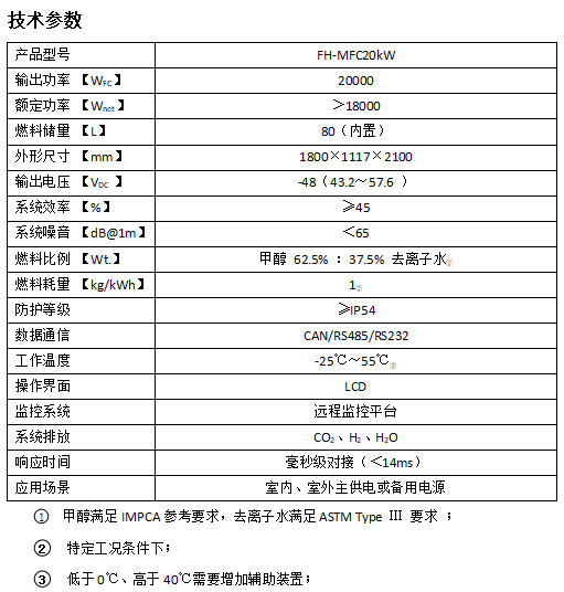 Cw-mfc20kw is a 20kW methanol water hydrogen fuel cell generator. The full closed-loop design concept has greatly guaranteed the reliability and service life of the hydrogen generator, which is at the leading level in the industry. The whole machine adopts modular design, which is convenient for production, assembly, operation and maintenance. The whole machine control system includes touch LCD control, WiFi control (mobile app) and remote wireless control (4G); Alibaba cloud Internet of things service is used for remote control, which provides comprehensive monitoring, dynamic alarm prompt, data sampling and collection for each device sold by our company. The cabinet meets the IP55 protection grade standard and can be applied to most outdoor environments.